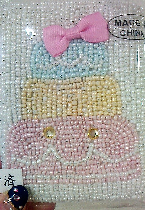 - ★チェーン付 ビーズパスケース 定期入デコレーションケーキ☆ホワイトビーズにピンク色リボンが乙女 神戸乙仲通り雑貨店