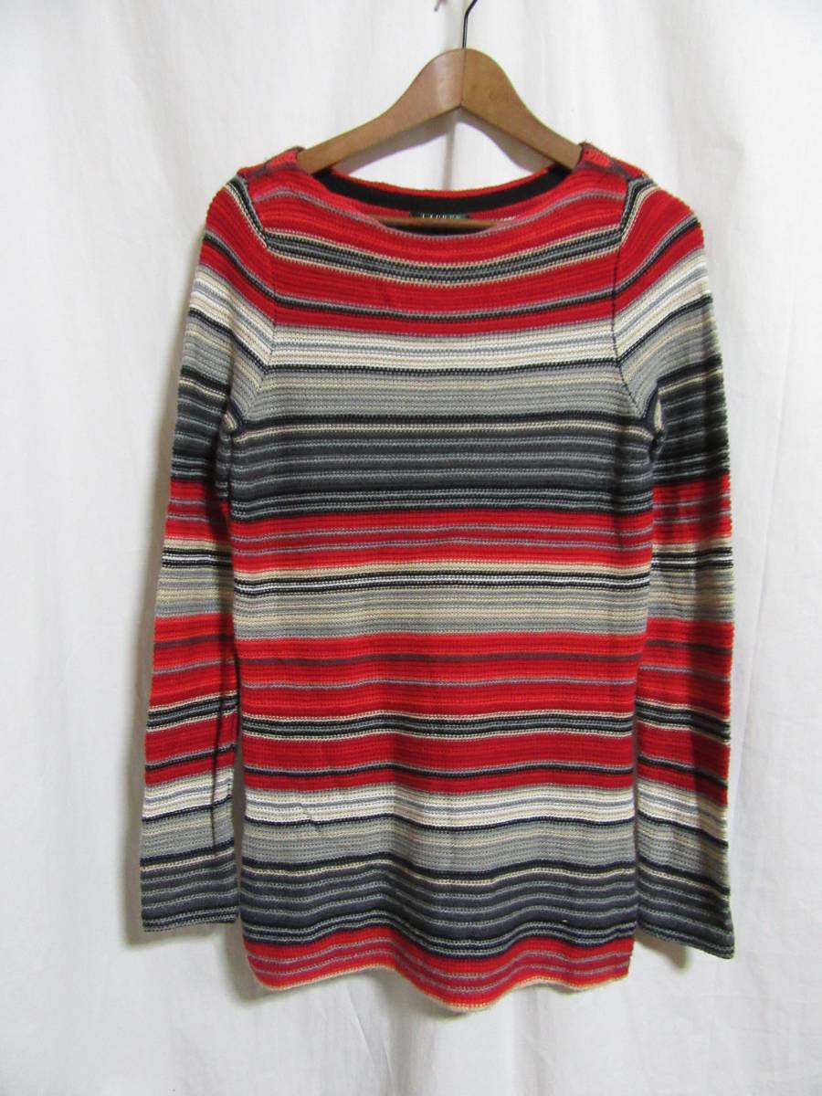 > ☆☆送料無料☆☆RalphLauren☆ネイティブラグ柄☆コットンニットセーター☆ロング丈☆M☆A8☆