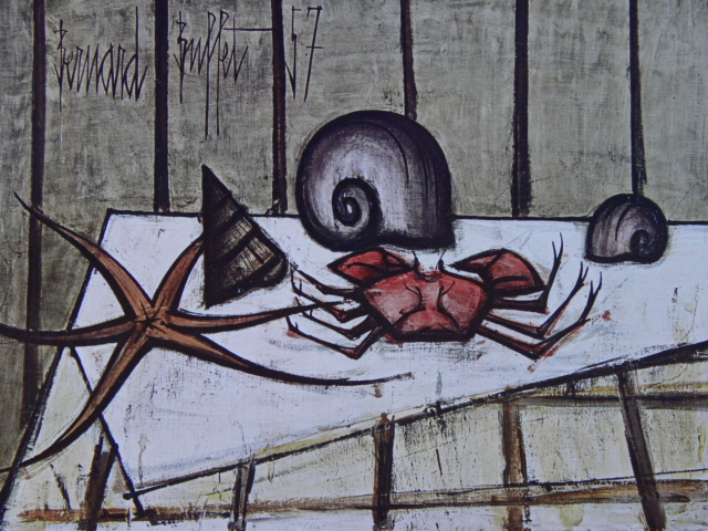 - ベルナール・ビュッフェ、蟹のいる静物、希少な額装用画集より、新品高級額装付、状態良好、送料無料