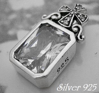 - シルバー925銀のジルコニア[レクタングルカット]十字架ジルコニア付 ペンダント/S&A silver