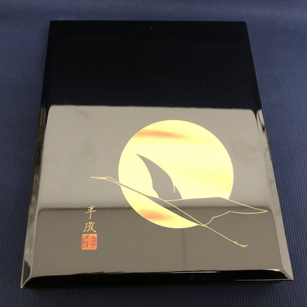 - 未使用品★平成鶴 漆器 文庫 裏に名前記載あり 箱あり管理1803 I-2