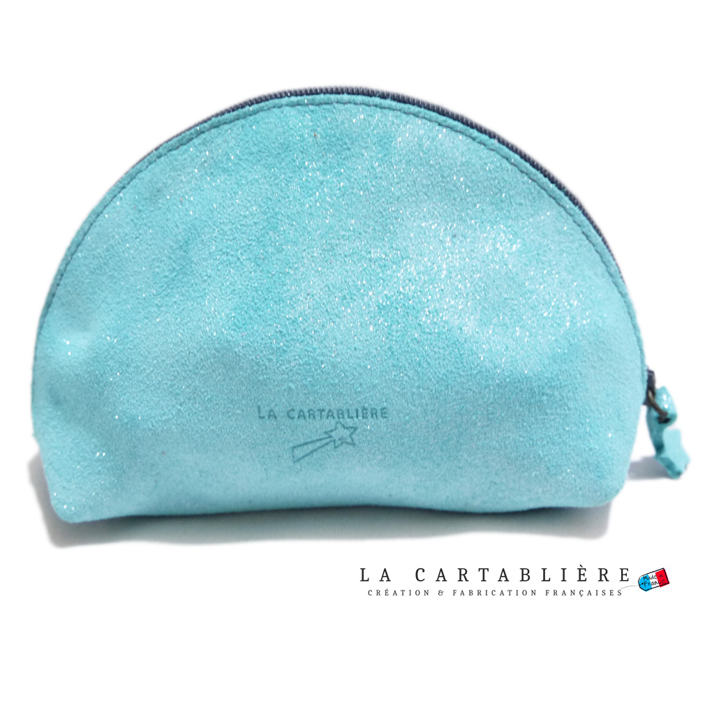 - LA CARTABLIEREフランス製きらきらスエード 半円ポーチ#Lブルー★★