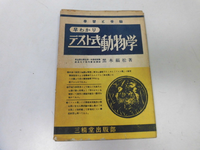 - ●P718●早わかりテスト式動物学●学習と受験●黒木福松●三精堂●昭和11年●生物学哺乳類鳥類節足動物魚類動物通論●即決