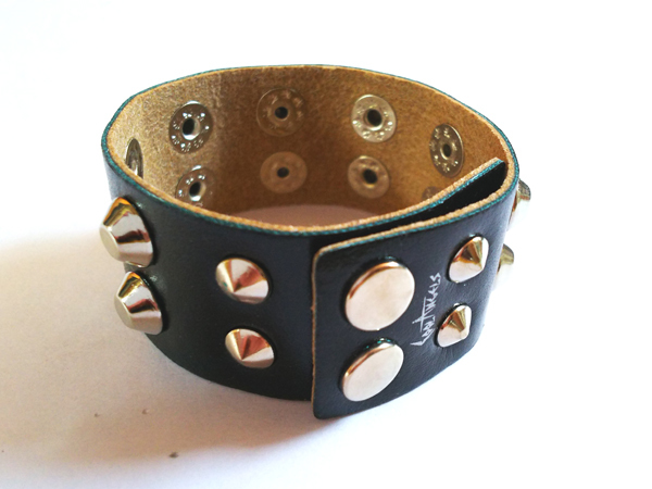 - 2♪新品♪275-2合皮メタルブレス★黒★(銀色ボタン型スタッズ2列) 【BEN・COUGAR】ベン・クーガー 台形錐鋲/パンクリスト