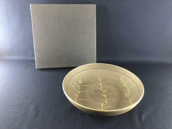 - 未使用品★清水焼 焼メ金彩草花 中鉢 金彩 箱あり管理1805 K-6