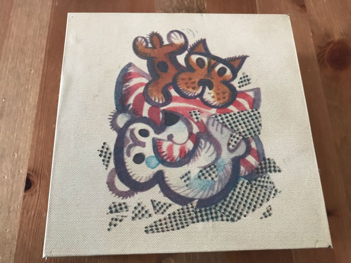 > フェリシモ チェコの絵本作家 ルヂェク・ヴィムルの ファブリックパネル風壁掛けボックスの会 犬のじゃれあい 鍵掛け