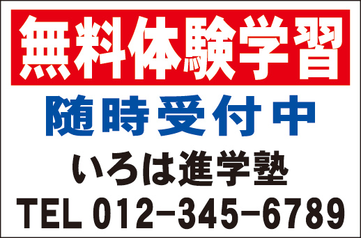 - 名入付各種塾・教室募集看板「無料体験学習」Lサイズ60x91cm
