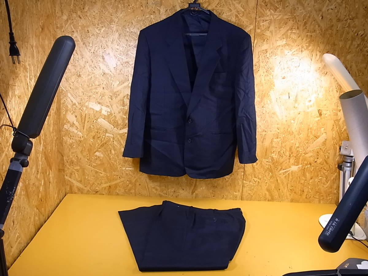 > □Ba/396☆Nomura Original☆メンズ ストライプ柄シングルスーツ セットアップ ブラック☆ジャケット&スラックス☆中古品