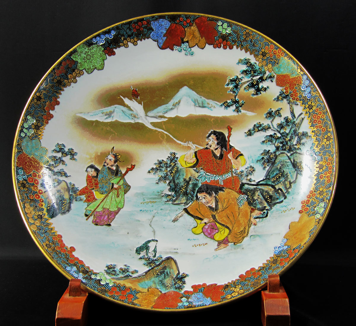 - 九谷焼大皿賢人図 九谷松鶴の賢人図 40㎝