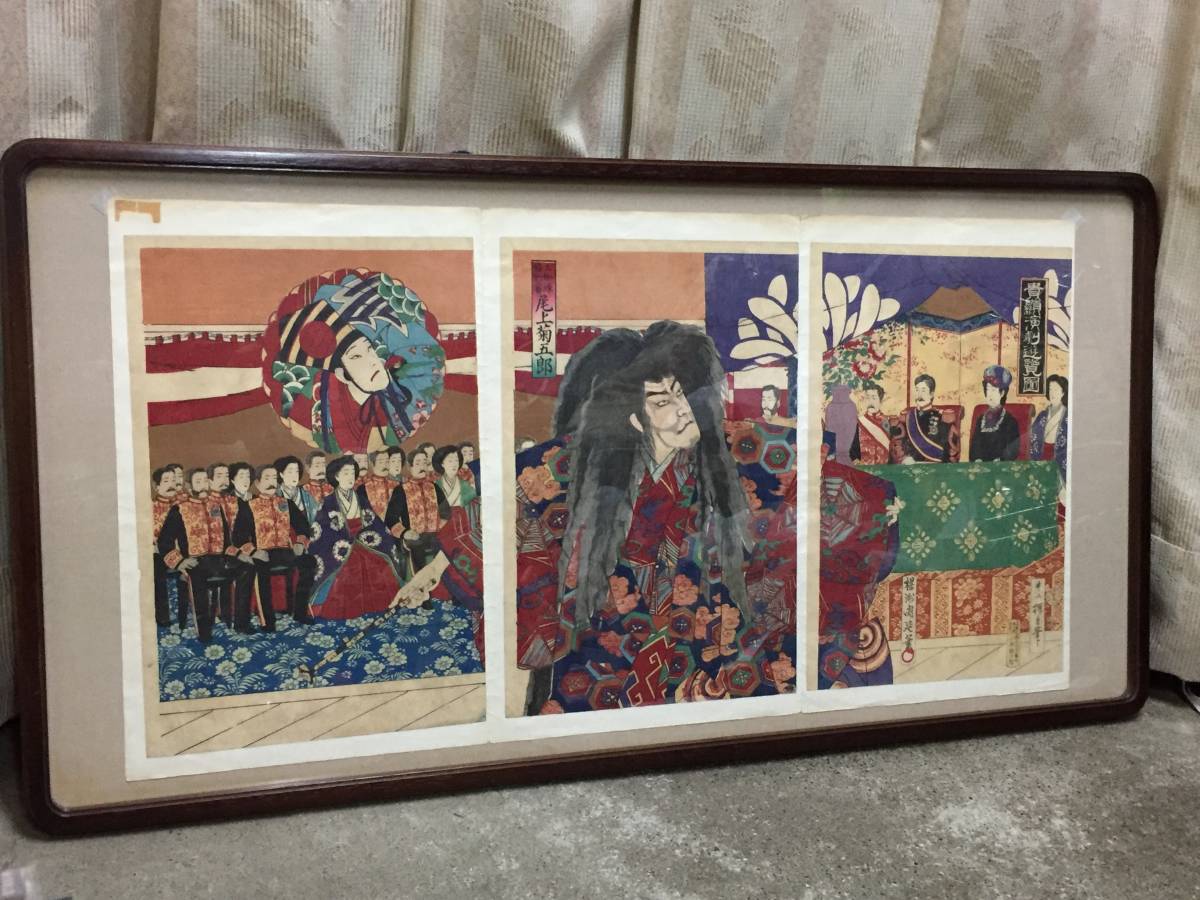 - 旧家買出し品 浮世絵 版画 時代もの 額のサイズ横93cm縦48cm 同梱包可能