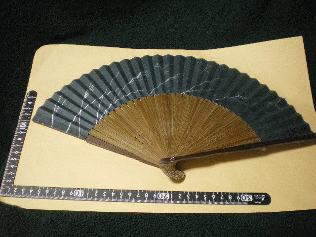 - 珍品フリマ] 竹細工 携帯用扇子 センス 折りたたみ 骨組みは竹 扇面の半径 20cm 全長 22cm [送料無料]