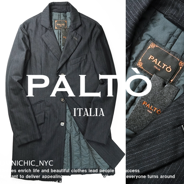 > ■新品10.5万【PALTO】パルト/洗練されたエレガントな佇まい/ネイビーストライプウールチェスターコート50/MADE IN ITALY/日本 L 相当/C662