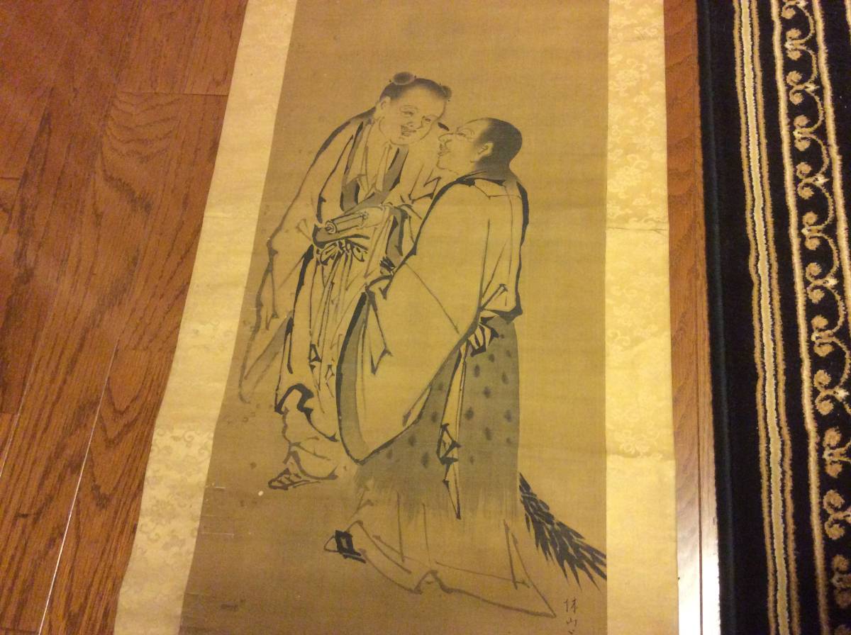- 江戸中期絵師 狩野休山?(是信)肉筆?掛軸 共箱付