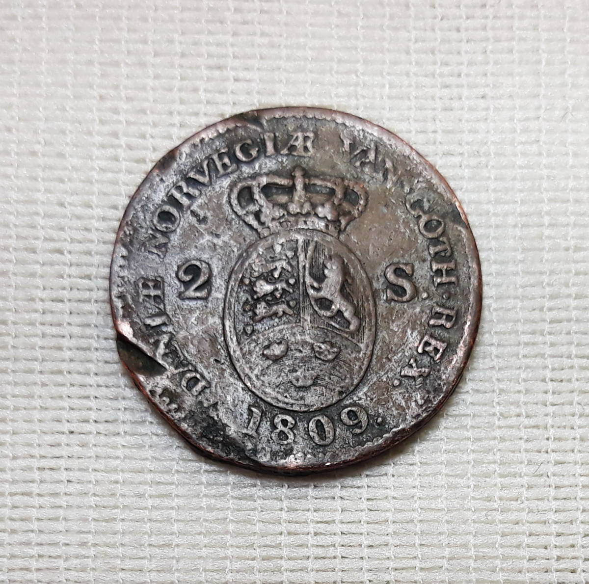 - 1809年 デンマーク 2 SKILLING - KING FREDERIK VI 22mm ◆ q-33