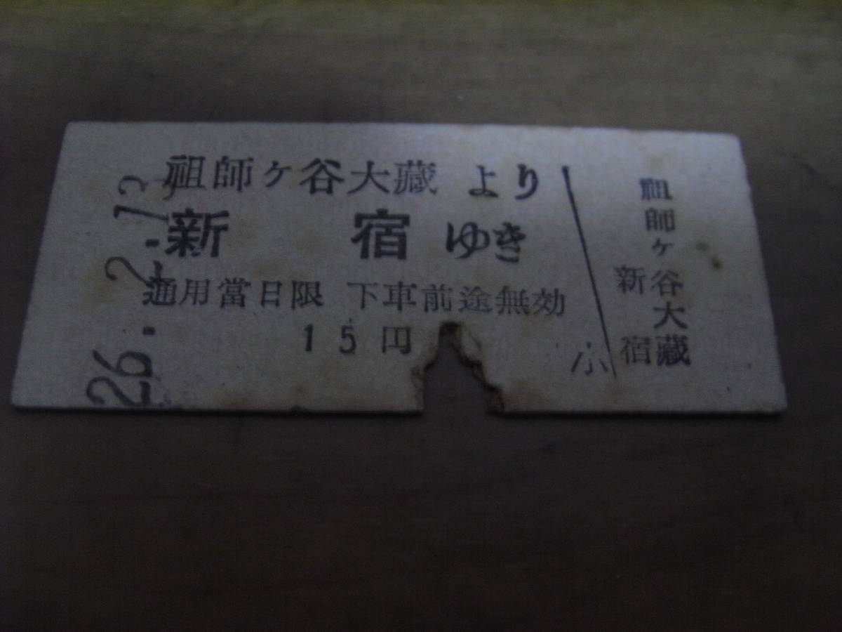- 小田急電鉄 祖師ヶ谷大蔵より新宿ゆき 15円 昭和26年2月13日