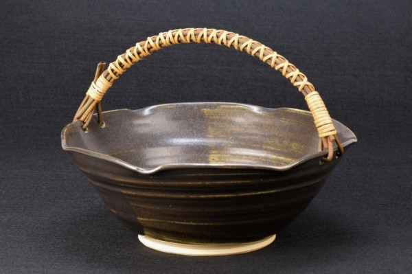 - E24 銘:楽峰 手鉢 手付鉢 菓子器 盛込鉢 /金彩/茶道具 (kngs)