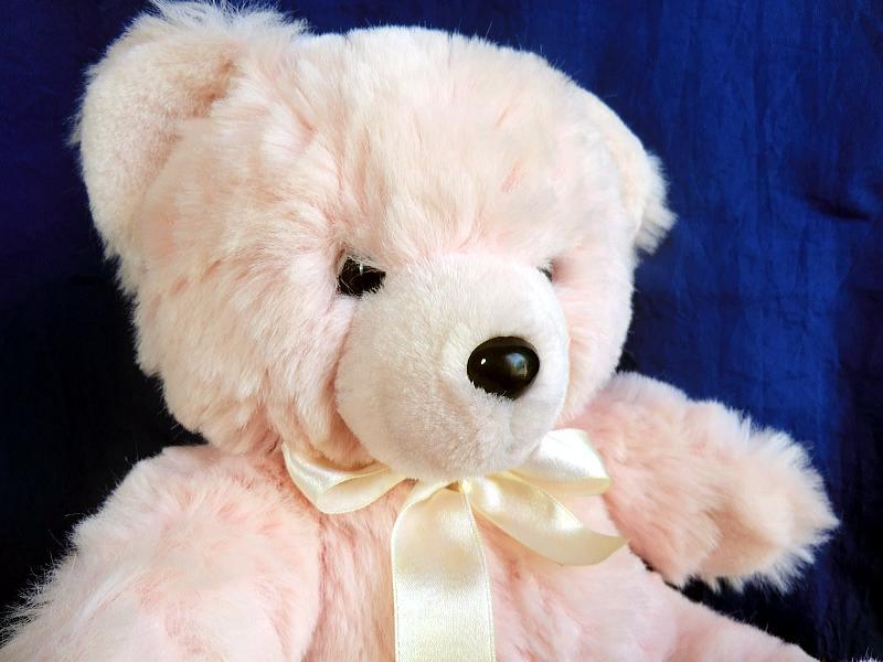- 【レトロ・アンティーク♪】ふわふわ・もふもふ生地 白いリボンがおしゃれな ピンクのクマさん ぬいぐるみ テディベア 約30㎝
