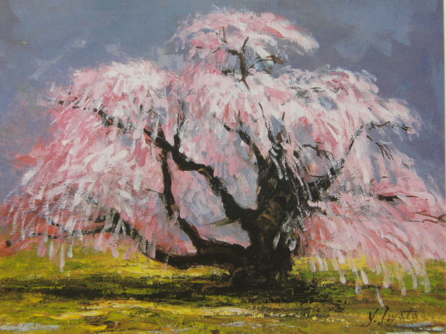 - 岩田康彦、【三春の滝桜】、希少な額装用画集より、美品、新品額装付、インテリア、春、桜