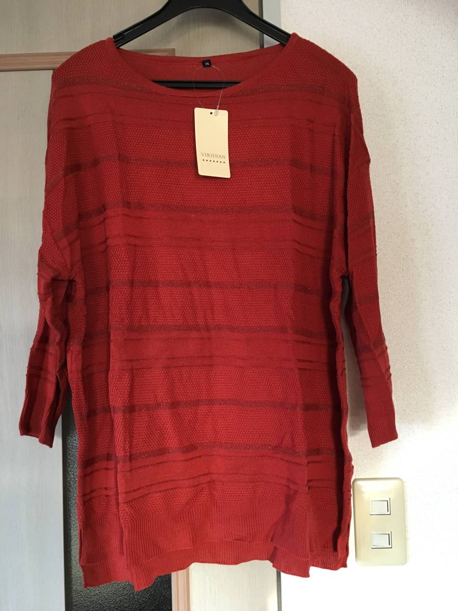 - ★未使用 タグ付き ニット チュニック ラメ糸入り 七分袖 赤系 VIRIDIAN Mサイズ ベルーナ