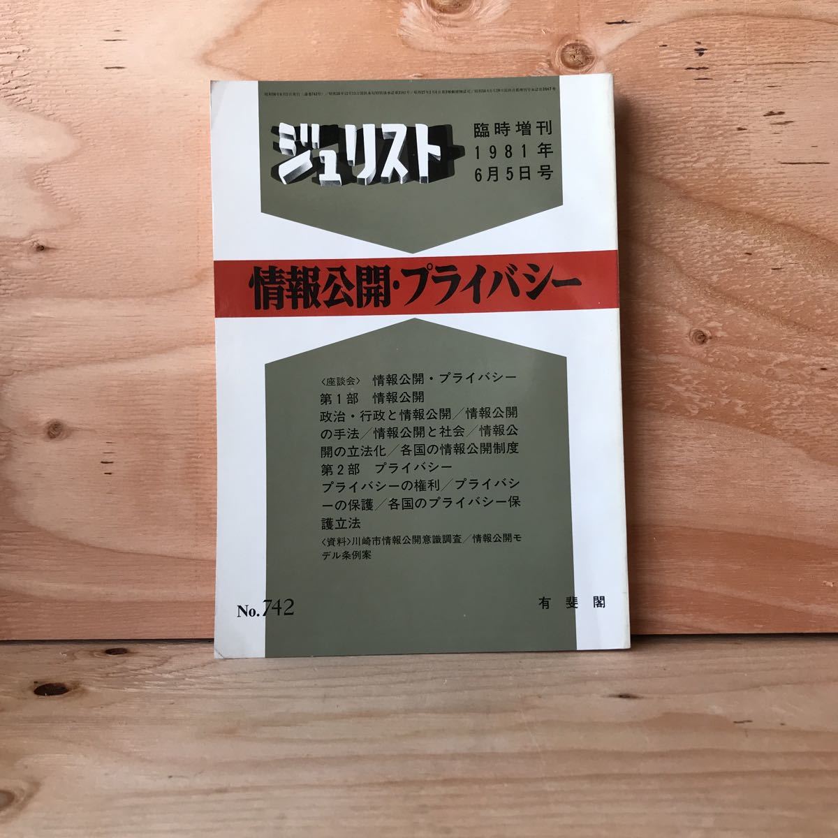 > ◎しB-190416 レア[ジュリスト 臨時増刊 1981年6月5日号 情報公開・プライバシー742号]各国のプライバシー保護立法」