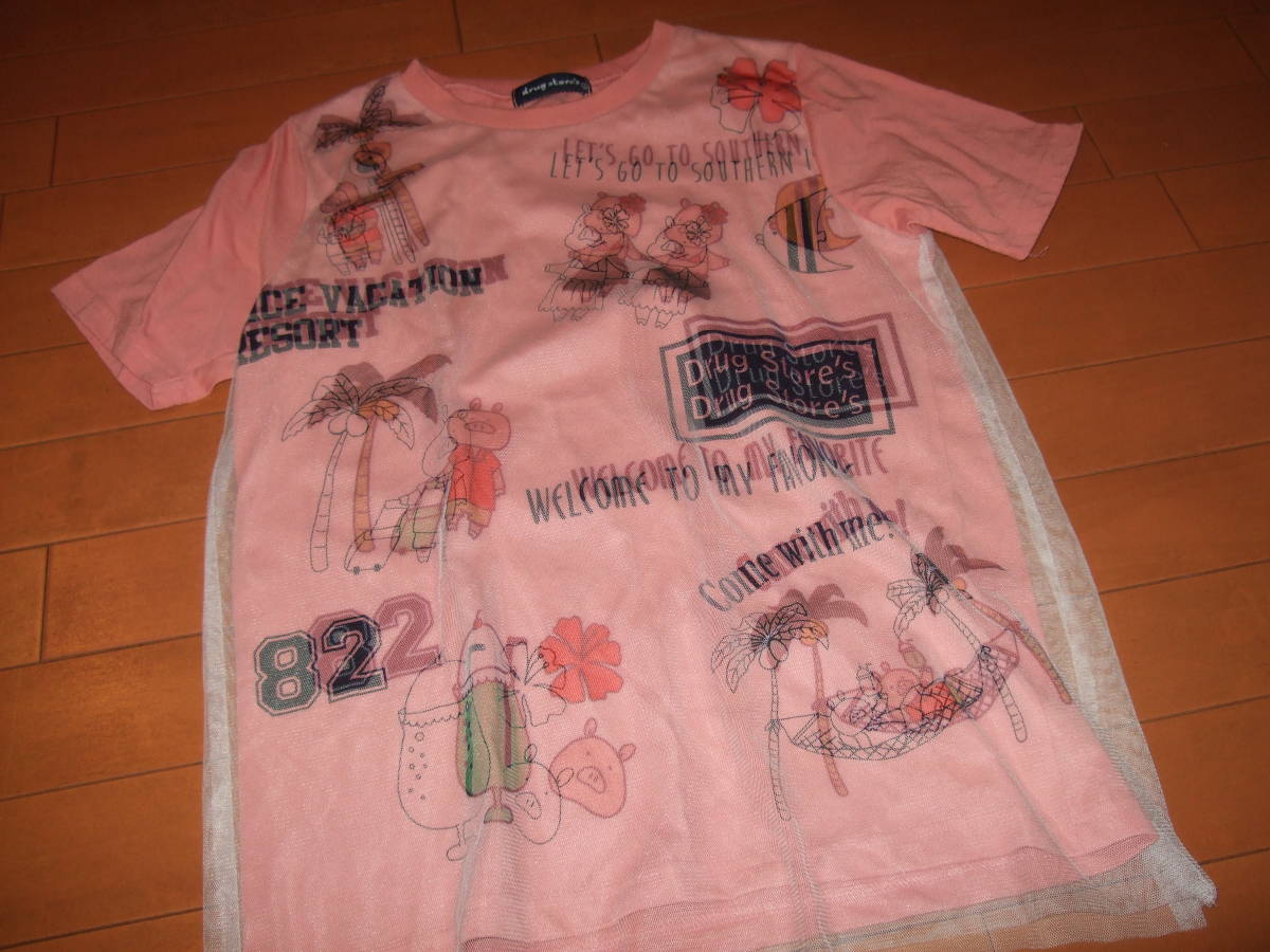 - 良品即決☆ドラッグストアーズ チュールデザインTシャツ☆サイズ3 オレンジ系
