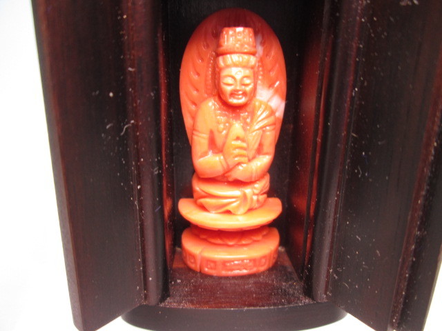 - ☆本珊瑚 仏像彫刻の置物 唐木御厨子付 22,94g