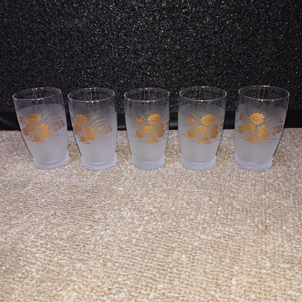 - 古民家 昭和 レトロ ガラス コップ カップ グラス 金絵 金色花柄 東洋ガラス