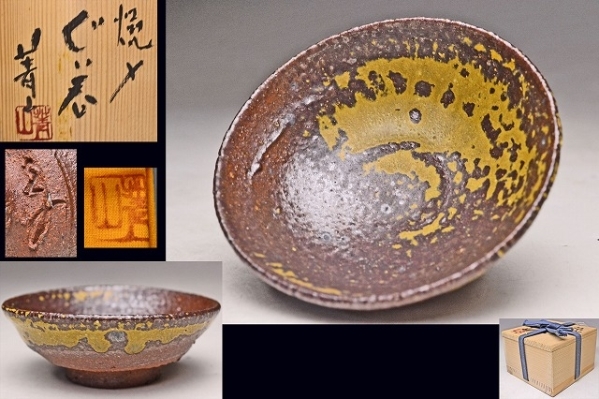 - 谷川菁山 ★ 常滑焼締ぐい呑 ★ 共箱共布 ★ 師: 水野静仙 ★ 検 酒器 盃 杯