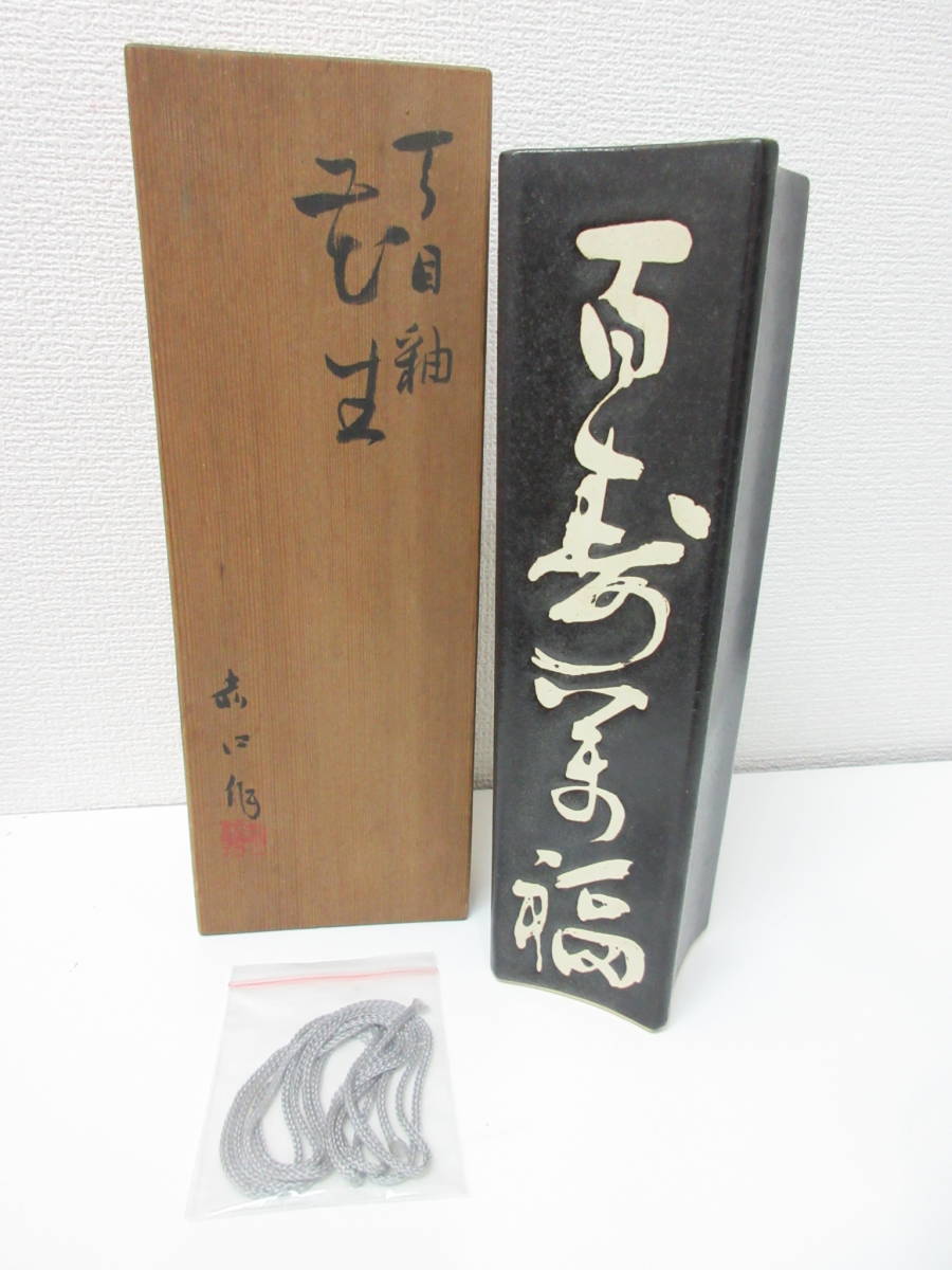 > 美品■百寿萬福 藤澤 赤 個展品 丁目釉 花生 花瓶 花生 銘あり 木箱 管理1908 O-6
