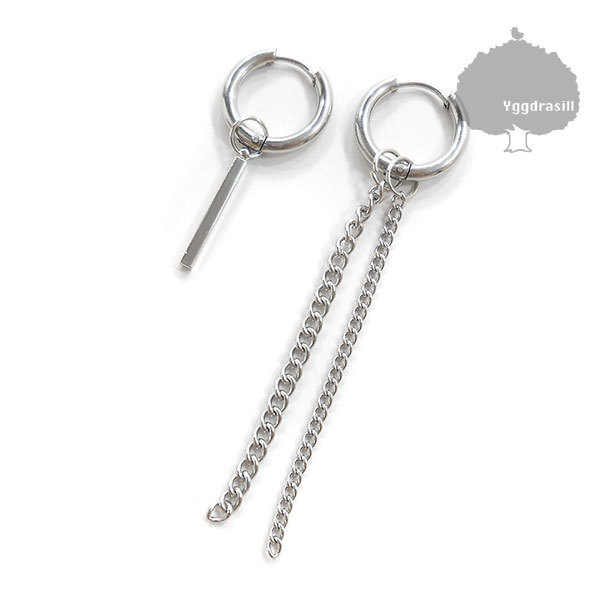 - YGG★新品 バー付き フープピアス & 2チェーン フープピアス 2点セット シルバー 銀 BTS jimin ジミン
