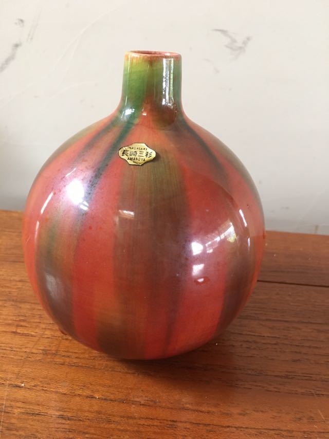 - 一輪挿し 長崎三彩 釉 花瓶 あまのや 陶器 綺麗な花瓶やね 昭和レトロ花瓶