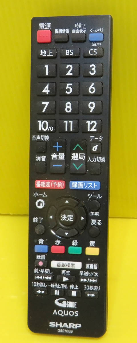 - 即発送!★2004★SHARP シャープ テレビリモコン GB278SB 蓋なし 動作品 保証付