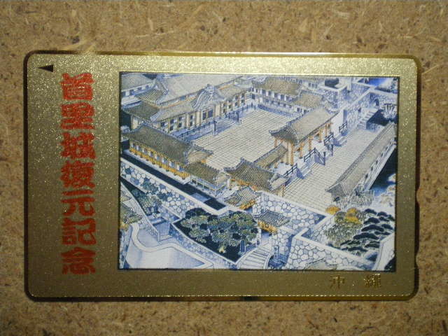 - siro・syuh4・首里城 復元記念 沖縄 金箔枠 2つ切り込み 未使用 50度数 テレカ