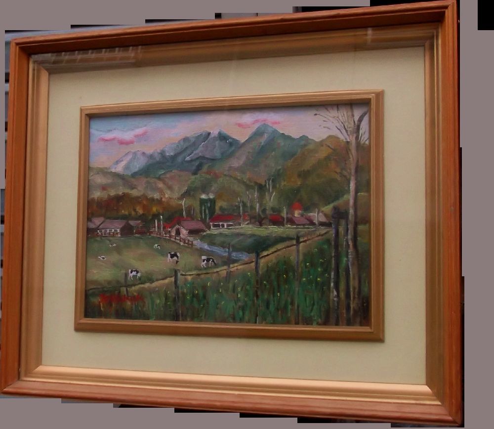 - No194 4号 油絵 牧場 印刷物ではありません、手描き