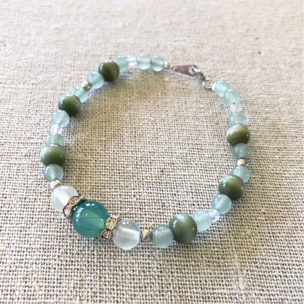 - 【新品】パワーストーンブレスレット★天然石ブレスレット アベンチュリン 合成キャッツアイ ロンデル 緑系 留め具 17cm silver925