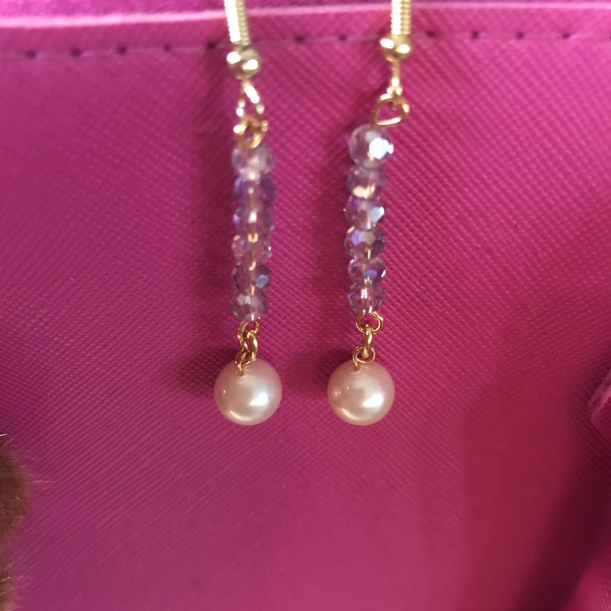 - ビンテージマジョリカパール8ミリとキラキラカットガラスのピアス