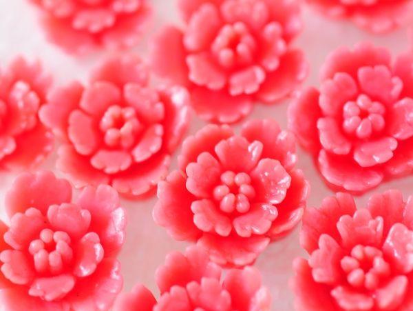 > コーラル ダブル フラワー 花 ジャパン ヴィンテージ カボション 日本製 レトロ ハンドメイド アクセサリー パーツ 10mm 4個