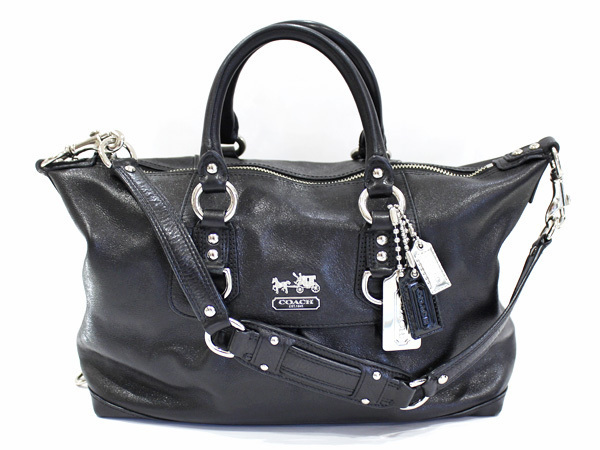 > 質店鑑定済み $ 超美品 ■ COACH ■ コーチ■ マディソン レザー製 2WAY ショルダー ハンドバッグ■ 黒 ブラック■ストラップ付■送料無料
