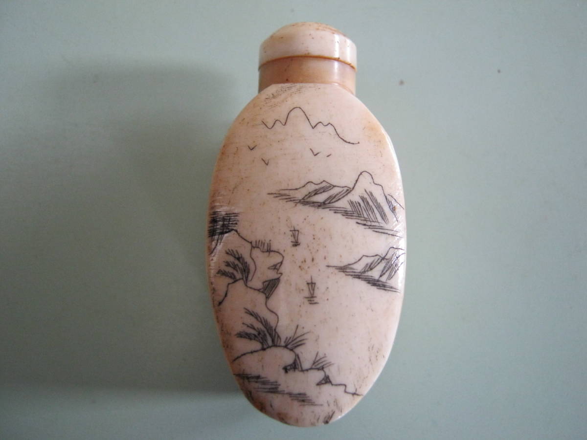 - 【動物の骨 彫刻 鼻煙壷(両面に彫刻)】