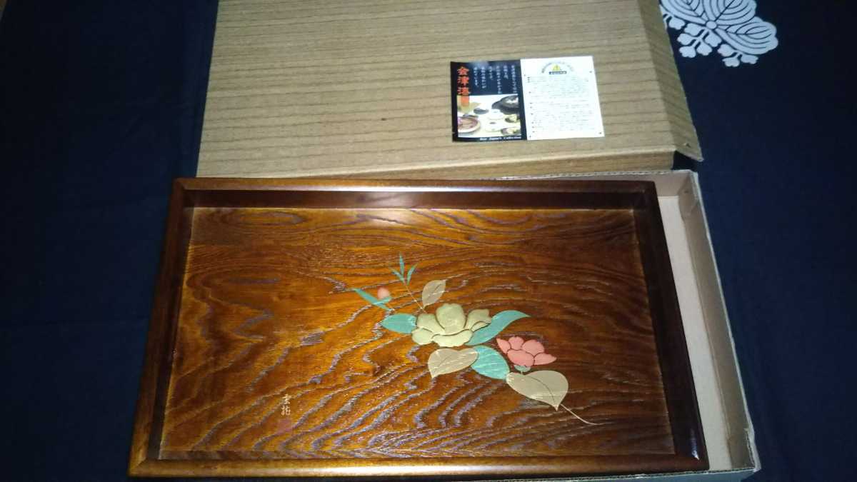- 会津漆器椿図案持ち手付き角盆 サイズ【縦27㌢横45㌢高さ4㌢重さ550㌘】