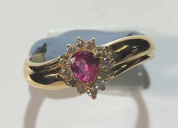 - K18 YG 3.3g ルビー 0.35ct ダイヤ 0.14ct リング 13号