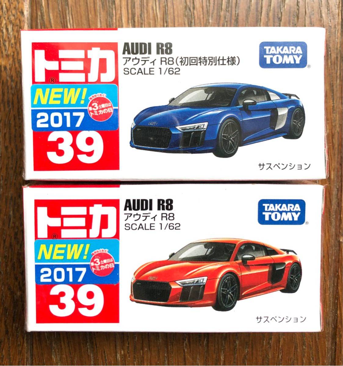 - 2017 Audi R8 アウディ アール エイト 初回特別仕様 ノーマル 2台 セット Blue Red ブルー レッド Takara Tomy タカラ トミー トミカ 絶版