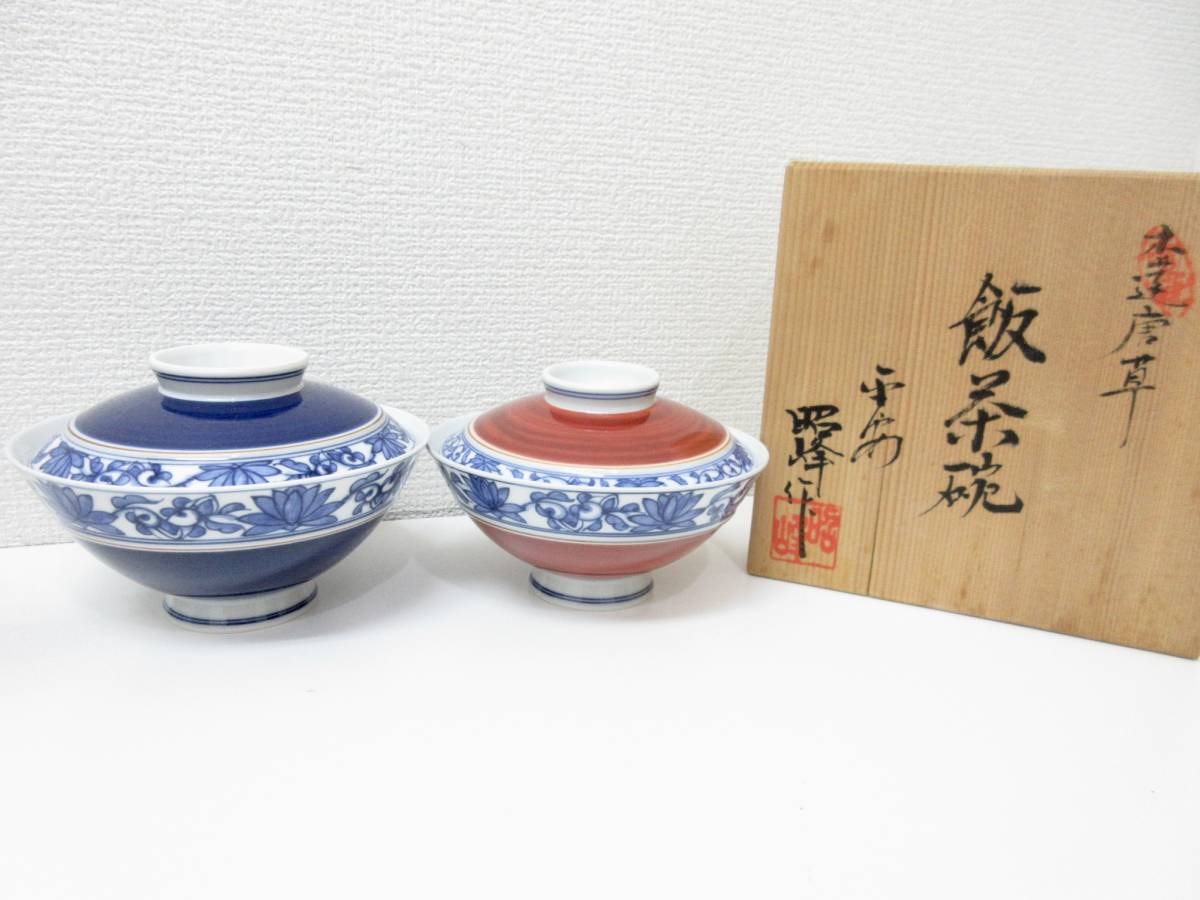 - 極美品■清水焼 京焼 唐草 平安 昭峰作 夫婦 飯茶碗 ペア 御茶碗 木箱 難あり 管理2003 P-6