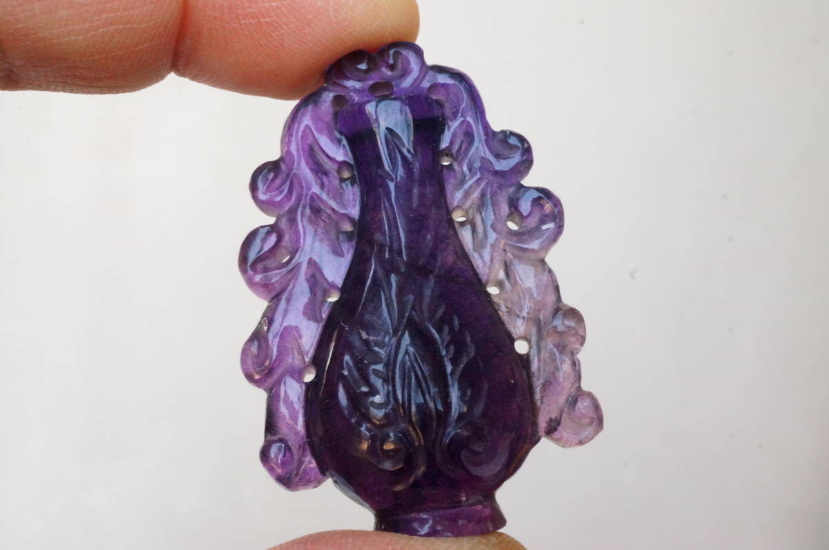 - 希少!特大129ct!極上天然アメジスト(紫水晶)「壺」彫刻品高透明度/製作次代不明(35年位前)