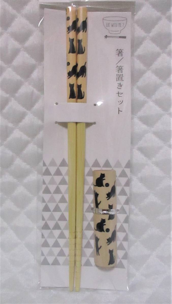 > 【 猫 箸 & 箸置き セット 】 ねこ ネコ 天然木 新品 即決 キャット CAT 可愛い! 食器 食事
