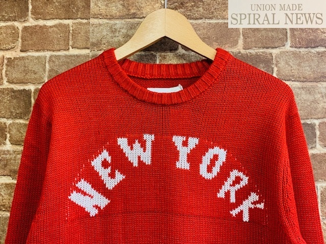 > ★表記XL/新品!UNION MADE SPIRAL NEWS.ニット.赤×白.NEW YORK.セーター.雰囲気◎.セレカジサーフロック.西海岸カリフォルニアスタイル
