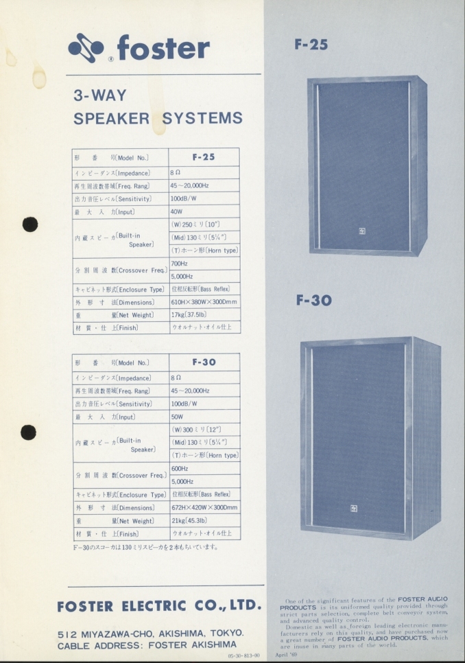 - Fostex F-25/F-30のカタログ フォステクス 管2091