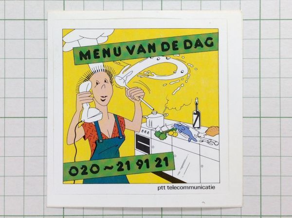 - 外国 古いステッカー:MENNU VAN DE DAG イラスト料理 ビンテージ 雑貨 車 +Db