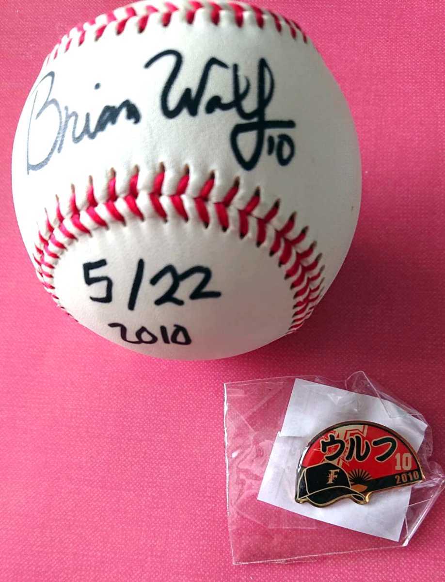 - ●直筆サインボール 北海道日本ハムファイターズ 『ブライアン・ウルフ』投手 2010年 ピンバッジおまけ付き