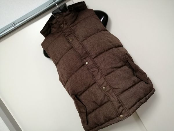 - kkyj3807 ■ GU ■ ジーユー ベスト ダウン風 中わた入り フード フーディー フーデッド ダークブラウン こげ茶 XL